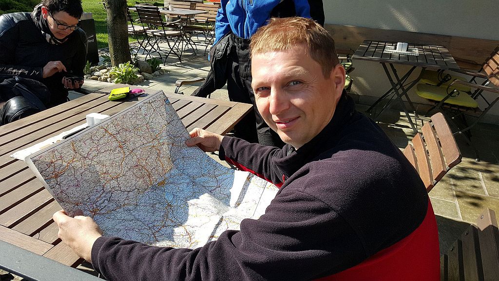 Prvi krajši postanek je bil pri Grofu na Vranskem. Tu smo malo razdelali našo nadaljnjo pot. Sicer je vodenje bilo s pomočjo tehnologije Garmin in TomTom, ampak ni ga čez dobro karto, da človek vsaj vidi kje in kako bo potoval.
