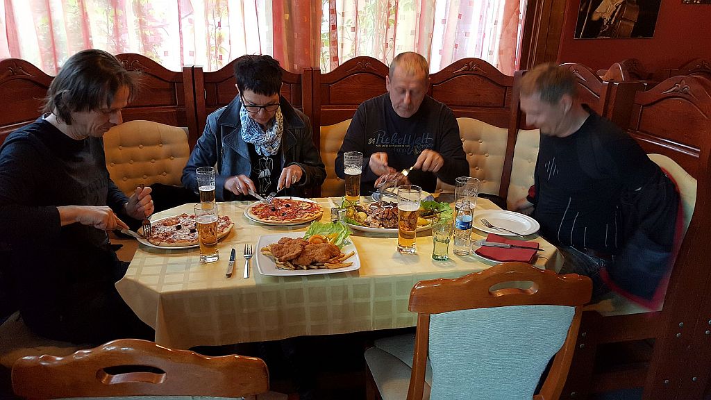 Po predlogu lastnika hiške smo se sprehodili do gostilnice, kjer smo si privoščili kozarček za dušo in pojedli res okusno pripravljeno hrano.