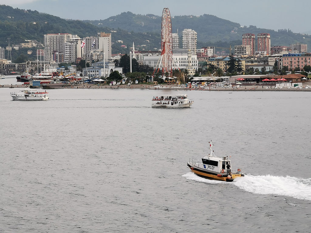 Poglej ostaloŠe en dan na morju. Zajtrk je bil spet obilen. Očitno tovornjakarji potrebujejo več in so navajeni delati bolj obilne obroke. Za kosilo krompirček in meso. Potem pa počasi pakiranje za odhod. Preverjanje potnih listov so naredili na ladji in je minilo hitro. Potem pa spet dolgo čakanje, da so nas spustili dol. Skoraj tri ure. Do hotel smo prišli dokaj pozno. Je pa zato soba velika in ima zakonsko posteljo za Marjana in Darjo. Midva z Gregorjem pa imava vsak svojo posteljo. Sedaj pa bolj umirjeno popotovanje po Gruziji in ogled Gruzijskih znamenitosti.