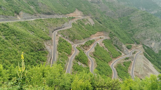 Dežju sva uspešno bežala. Drugače lep dan in vožnja po albanski SH20.