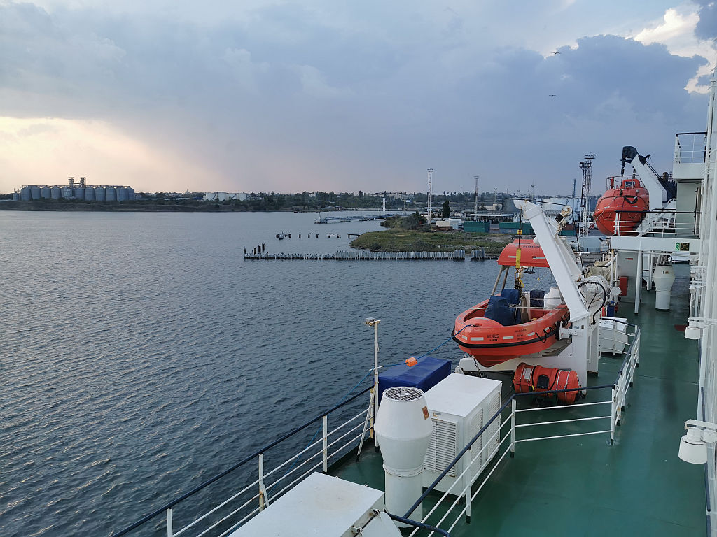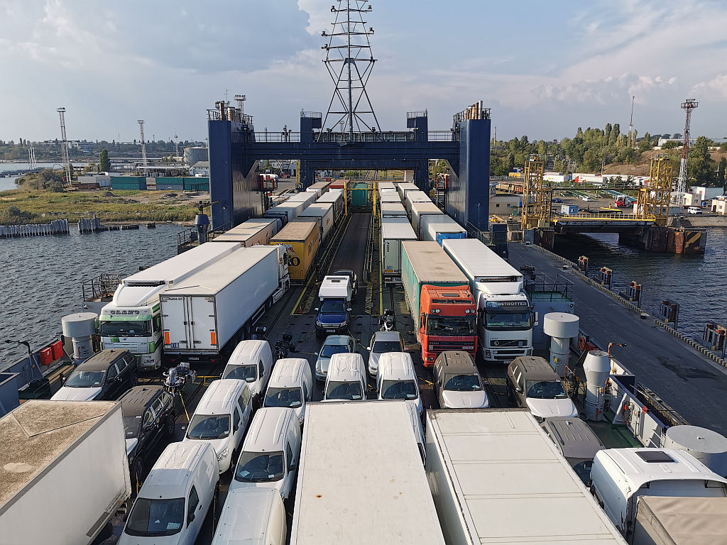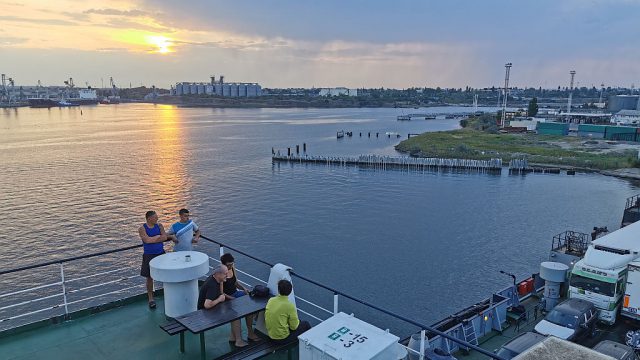 Poglej ostaloZajtrk v hotelu je bil odličen. Pred check-inom smo se vmes ustavili še v Odesi pri katedrali. Sam sem počakal pri motorjih ostali pa so malce sprehodili in naredili sliko ali dve. Check-in smo hitro opravili. Ker smo do vkrcanja imeli še dobro uro časa smo se zapeljali v bližnje mestece Chornomorsk. Tam smo si privoščili kavico in mineralno vodo. Cesta je bil še mokra od dežja, ki je verjetno padel kako uro prej. Postopki pred vkrcanjem na ladjo pa so bila prava mora. Najprej je samo pregledal potne liste in naredil kljukice. Smo mislili, da lahko gremo not, pa smo morali čakati skoraj uro, da so nam prinesli list s katerim so nas spustili v luko. Vmes smo se spoznavali z ostalimi potniki. Celo en motorist, Nemec s Twin Afrika. Nemca s Toyoto in posebno kabino ter Francoz s citroenom.