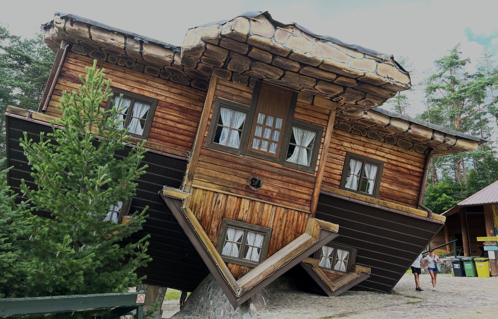 Malce pred Gdanskom sem obiskal vasico Syzmbark. Mislil sem, da imajo kot turistično atrakcijo samo narobe obrnjeno hišo. Pa imajo pravi mali park znamenitosti. Naj slike povedo svoje.