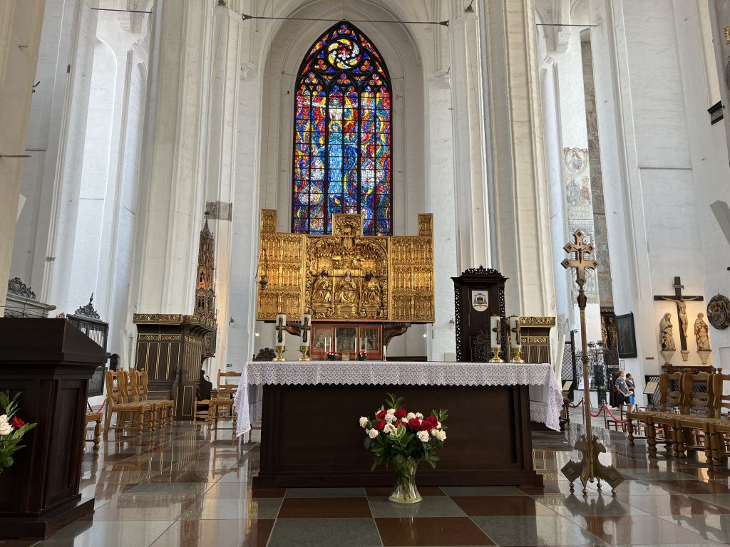 V samem Gdansku pa sem obiskal baziliko svete Marije. Marienkirche, ali formalno bazilika Vnebovzetja Blažene Device Marije, je zidana gotska katoliška cerkev v osrednjem Gdansku na Poljskem. S svojo prostornino med 185.000 m3 in 190.000 m3 je trenutno ena od dveh ali treh največjih zidanih cerkva na svetu. Večja je le bazilika San Petronio v Bologni, ki obsega 258.000 m3, münchenska Frauenkirche in Ulmska cerkev prav tako obsegata 185.000 do 190.000 m3. Med letoma 1536 in 1572 je bila cerkev sv. Marije hkrati namenjena katoliškim in luteranskim službam. Od 16. stoletja do leta 1945 je bila druga največja luteranska cerkev na svetu. Dolga je 105,5 metra, ladja pa je široka 66 metrov. V cerkvi je prostora za 25.000 ljudi. Je ladijska dvoranska cerkev s transeptom. Je so katedrala v rimskokatoliški nadškofiji Gdansk, skupaj s katedralo Oliwa.