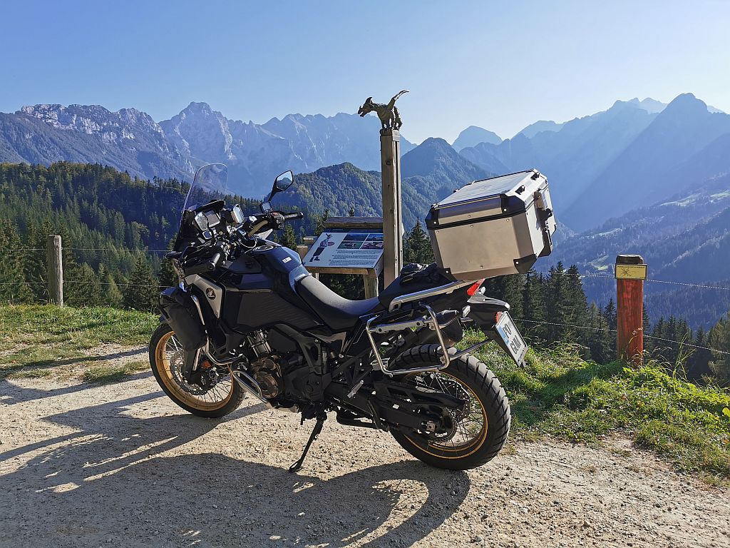 Ker je tako lep dan, sem se odločil. da se zapeljem do Jezerskega na kavico. Ker je bilo časa več kot dovolj, sem se zapeljal še skozi Avstrijo in nazaj v Slovenijo preko Pavličevega sedla. Spodnja cesta proti Solčavi je še vedno zaprta. Hondica se je že navadila na makadamske ceste, tako da sem se zapeljal do Svetega Duha v Podolševi. Potem pa preko Luč in Podvolovljeka na Kamnik in domov.