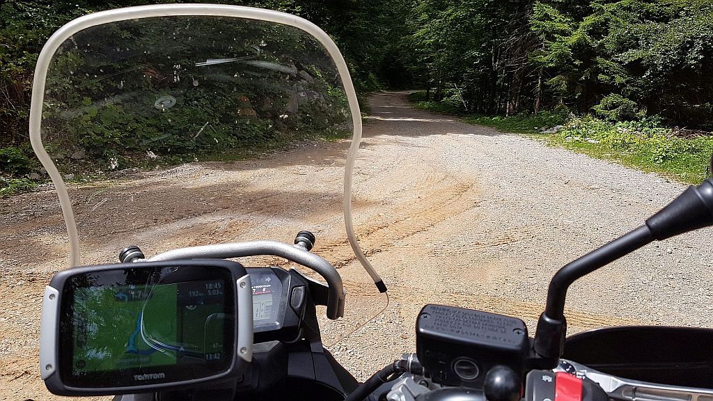 Moja naslednja točka ogleda pa je bil predviden vojaški muzej v Pivki. Ker je od Kozarišča proti Snežniku in Koritnicam makadamska cesta, sem se odločil, da gre po hrvaški strani, da pridem nazaj preko Jelšan. Pa me je TomTom malce “nategnil” in jo je na Hrvaški strani ubral po bližnjici. Tu sem seveda za nagrado dobil kakih 30 kilometrov makadama. In to po gozdnih poteh skozi Risnjak. Me je že malce zaskrbelo nekje na polovici poti, da ne bom končal v kakšni neprevozni cesti. K sreči se je vse lepo izšlo.