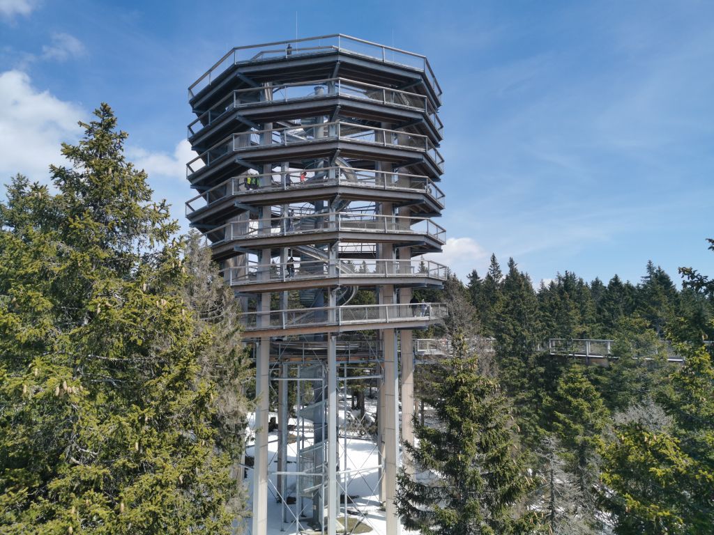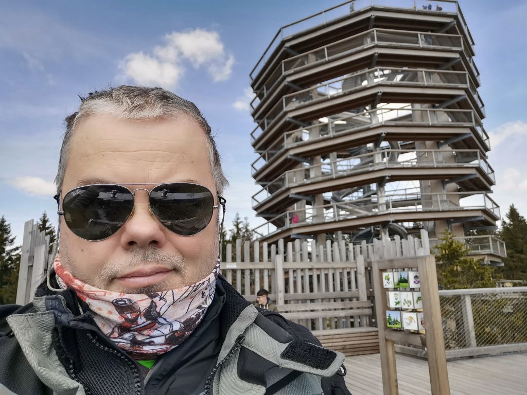 Prelepo vreme za izlet in sprehod med krošnjami. Na poti do tja pa še kratek postanek v Mini ZOO Land-u. Lepo urejen tematski park. Poleg lemurjev, makakov in prosto tekajočih kozličkov imajo sedaj tudi kralja živali. Na Rogli sem mislil, da se bom v kratkih rokavih sprehodil med krošnjami. Sem pozabil, da je trenutno na 1500 metrih še nekaj snega. Sem ostal kar v polni motoristični opremi. Stolp in pot sta lep arhitekturni dosežek. Ni pa nekega posebnega razgleda na vrhu. Za kaj takega se bo potrebno zapeljati recimo na Češko v Lipno. Ali recimo v Avstrijo na Salzkammergut. No je pa tudi naša pot med krošnjami svojevrstno doživetje. Ob povratku domov, pa še na eno domačo pico postreženo na terasi Kegeljčka.