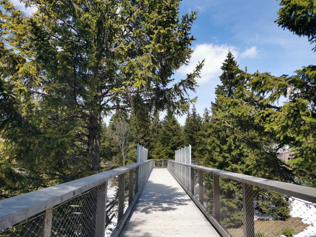Pot med krošnjami leži v osrčju mogočnih pohorskih gozdov, na vrhu Rogle, na nadmorski višini 1517 metrov. Pot vam bo pokazala, zakaj je pohorska narava edinstvena. Skupaj bomo spoznali drevesa krajevnih gozdov vse od korenin do vrhov krošenj. Postali boste delček gozdnega življenja ter se srečali s številnimi živalmi in rastlinami, ki jih ne boste našli nikjer drugje. 1000 metrov dolga pot vas bo popeljala skozi raznolik gozd, v katerem boste naleteli na mnoga presenečenja in nove reči, ki vas bodo učile o naravnih procesih v gozdu, o tem, kako jih zaščititi in o zanimivih dejstvih, ki vam bodo pomagala razumeti, kaj gozd in njegovi prebivalci potrebujejo za življenje in uspevanje.