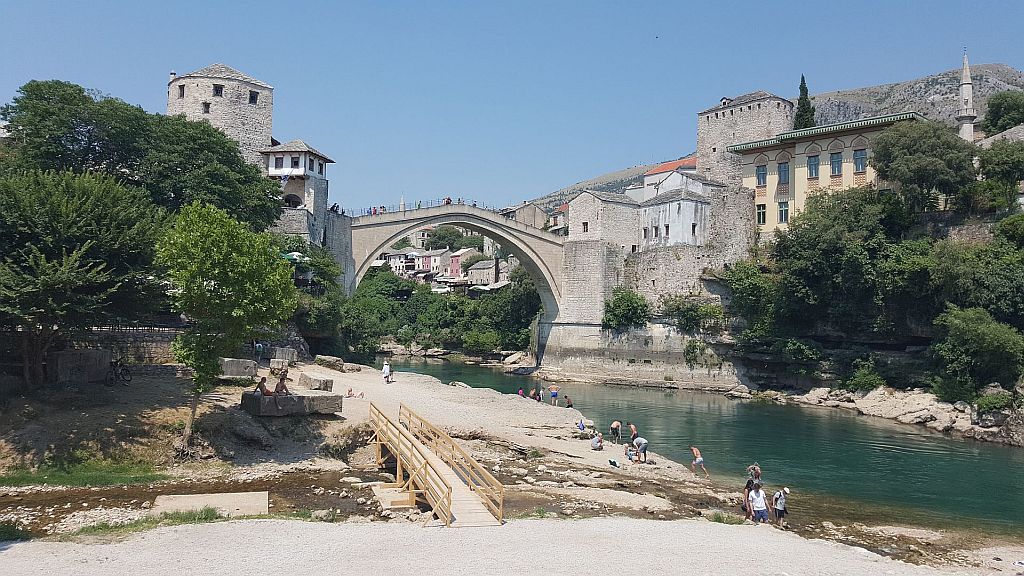 Od tu pa potem v pekel Bosne. V Mostarju je bilo namreč preko 40 stopinj Celzija. Blizu mosta sem se ustavil pri enem hotelu in jih poprosil, če lahko tam parkiram motor. Prijazno so mi dovolili. Tako je bil motor na varnem in v senci, jaz pa sem se sprehodil do mosta.