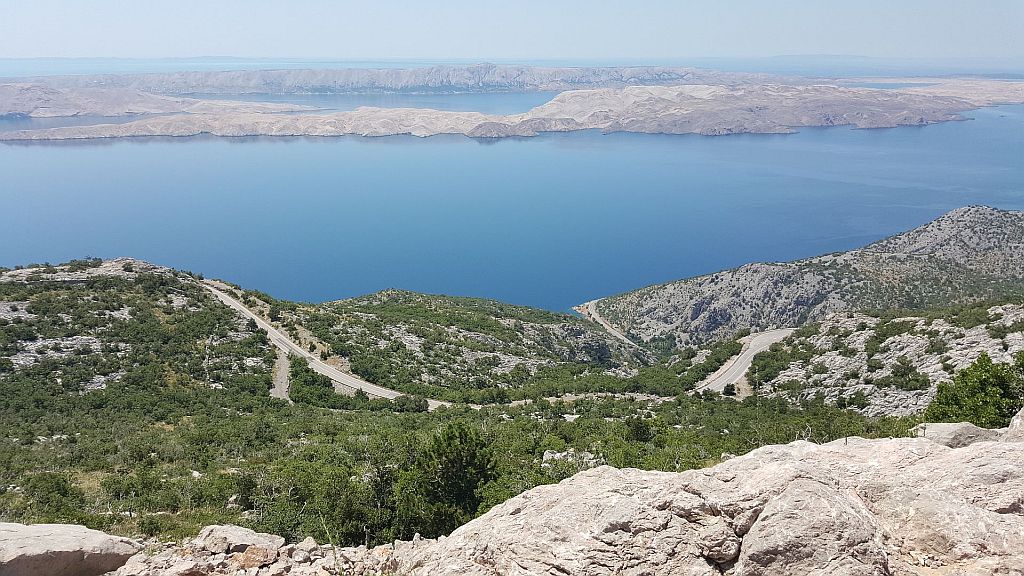 Ogledal sem si še kratek film o Tesli in se odpravil proti Karlobagu. Od Smiljana je lepa cesta, ki se vijugasto spušča proti Karlobagu.