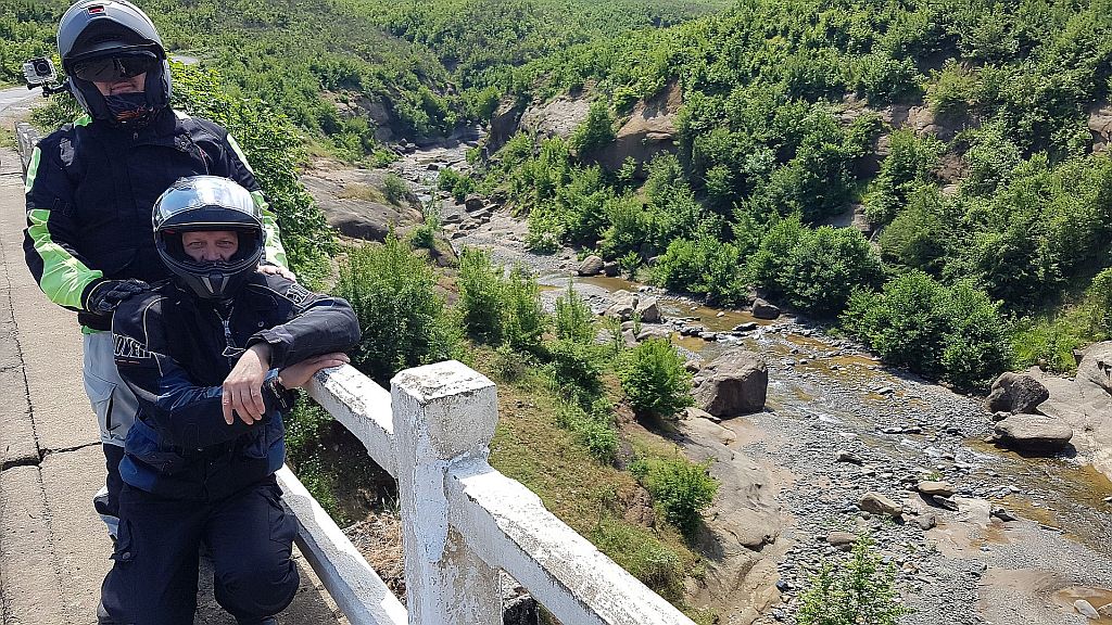 Poglej ostaloDanes je bil predviden samo ogled Samostana Bigorski v Mavrovem – Makedonija in zaključek v Ohridu. Pot nas naj bi peljala preko Debarja v Mavrovo. Kmalu po začetku se nam je Marjan “spuntal”. Mu ni bilo do obiska samostana, ampak je želel potovati na jug po Albaniji in priti s spodnje strani do Ohridskega jezera. Smo se odločili, da gre on po svoji poti, ostali pa gremo po načrtovani poti preko Mavrovega v Ohrid. Pot do samostana je bila precej zanimiva. Najprej smo prišli do mostu, ki je bil na koncu blokiran in prehoden le za pešce.