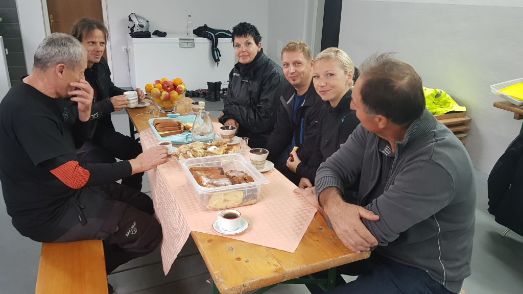 Pot smo zastavili zgodaj. Marjan in Darja sta štartala iz Škofje Loke. Na poti sta pobrala Gregorja in smo se skupaj dobili na Rašici. Ob osmih zjutraj je bilo še zelo megleno, cesta pa je bila ustrezno temu sveža in na izpostavljenih mestih kar spolzka. Od Rašice to Kostela, kjer se nam je pridružil preostanek ekipe, je bilo na izpostavljenih delih še vedno precej megleno.