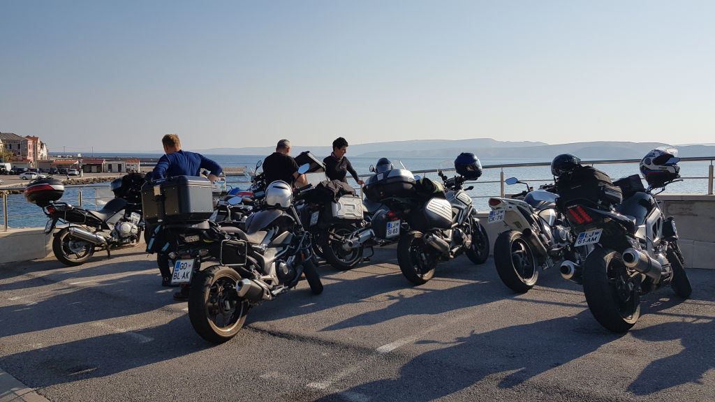 Končno se nam je uspelo zbrati skupaj, da smo v popolni zasedbi sprehodili konjičke do Paklenice. Bilo nas je kar osem in drobižek na štirih motorjih s spremljevalnim vozilom. V spremljevalnem vozilu sta bila Aleševa ata in mama, ki sta peljala malo Lariso. Aleš je bil s svojo nežno polovičko Jessy. Marjan pa s svojo gospo Darjo. Grega in jaz pa sva bila solo voznika. Organizacijo smo prepustili Nives Martinšek, ki je poskrbela za prenočišča, večerjo in odličen zajtrk.