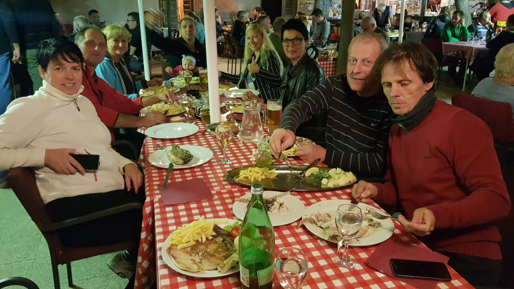 Dinko je zelo znan po odlično pripravljeni morski hrani. Vsak si je privoščil, kar mu je najbolj pasalo. Hrana je bila res odlična. Začuda tudi izredno poceni. Po obilni večerji smo se odpravil k zasluženem počitku. Mala Larisa je bila zelo pridna in je bila noč zelo mirna.