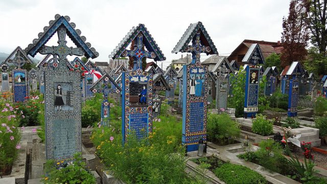 Pot nas je zanesla mimo male vasice Sapanta, ki je zelo znana po veselem pokopališču. Grobovi oziroma spomeniki so res zanimivo oblikovani. Slike naj bi pomenile poklic oziroma prikaz pokojnikovega življenja.