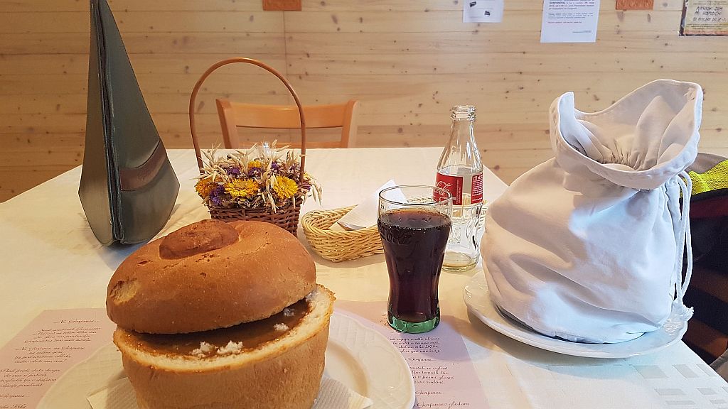 Tu sem si privoščil divjačinski golaž v kruhovi skodelici. Je bil res dober.