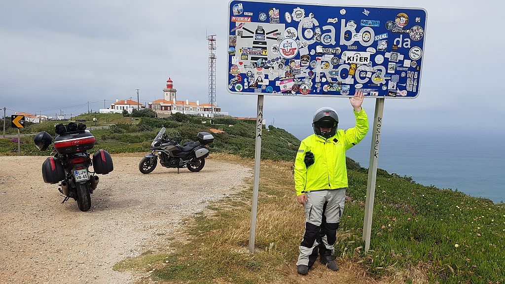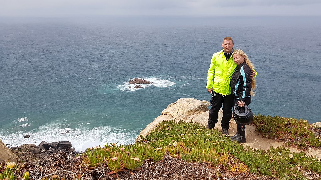 Lep razgled. Je pa zelo pihalo, da nas je skoraj odneslo. Seveda nismo pozabili nalepiti naše moto nalepke. Pot smo nadaljevali do najlepšega gradu na Portugalskem.
